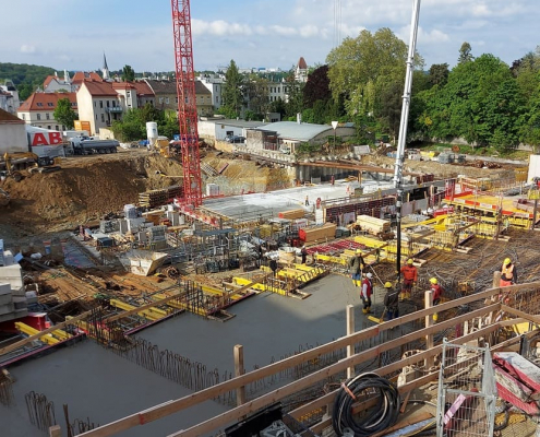 In letzter Zeit ist der Rohbau rasch vorangeschritten, und hat die riesige Baugrube fast ausgefüllt.